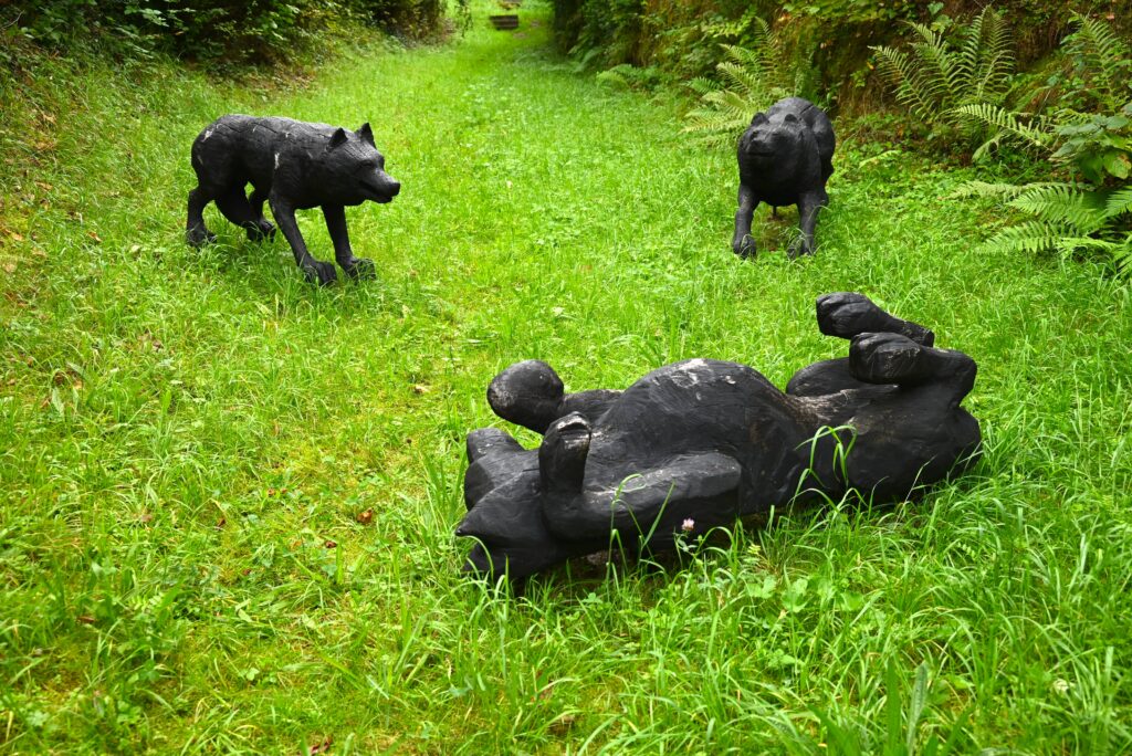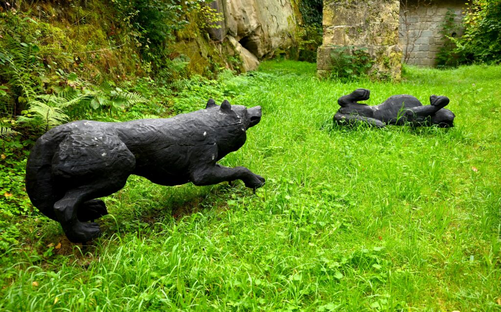 Seit über 20 Jahren lebt und arbeitet der Bildhauer Werner Neuhaus im oberen Emmental, zunächst auf der Moosegg oberhalb Signau und heute in Zollbrück. Sein Werkstoff ist ausschliesslich Holz, hartes, schweres Eichenholz. Daraus schafft er eigenwillige Figuren und Formen, manche monumental-raumbeherrschend, andere so filigran, wie es das Holz und sein Werkzeug, die Kettensäge, gerade noch zulassen. Die Natur, das Tierische, Handgreifliche, ist Neuhaus’ Lebenswelt. Über Jahre verbringt er den Sommer als Senn auf der Alp. Die Kühe bestimmen den Tageslauf, eine schwarze Schäferhündin ist seine Gefährtin. Nun hat er sich auf dem Wanner bei Zollbrück installiert, einem Emmentaler Bauernhof inmitten steiler Wiesen und Waldflecken. Die Kuh, der Wolf – sie erscheinen hier als Vertraute, die Rillen der Kettensäge werden zum Fellkleid.